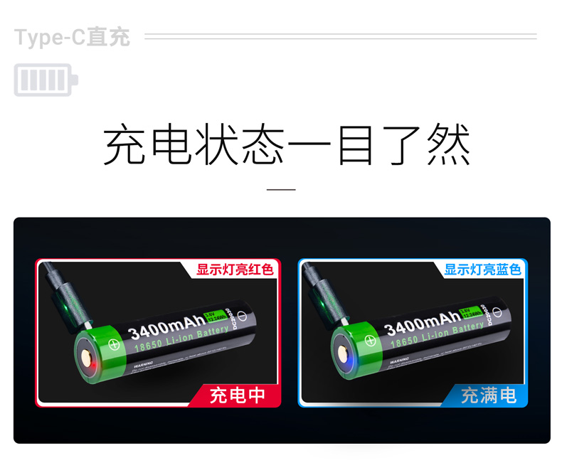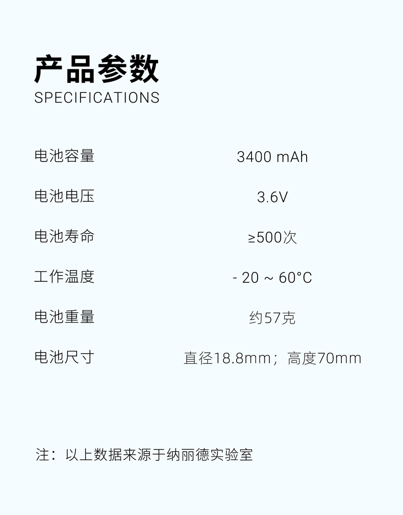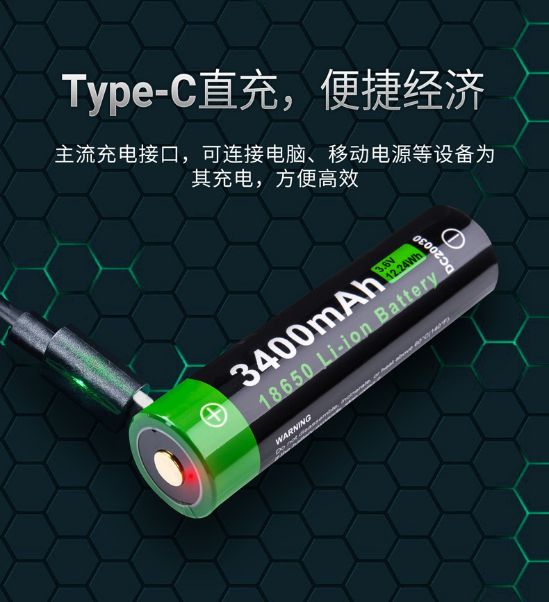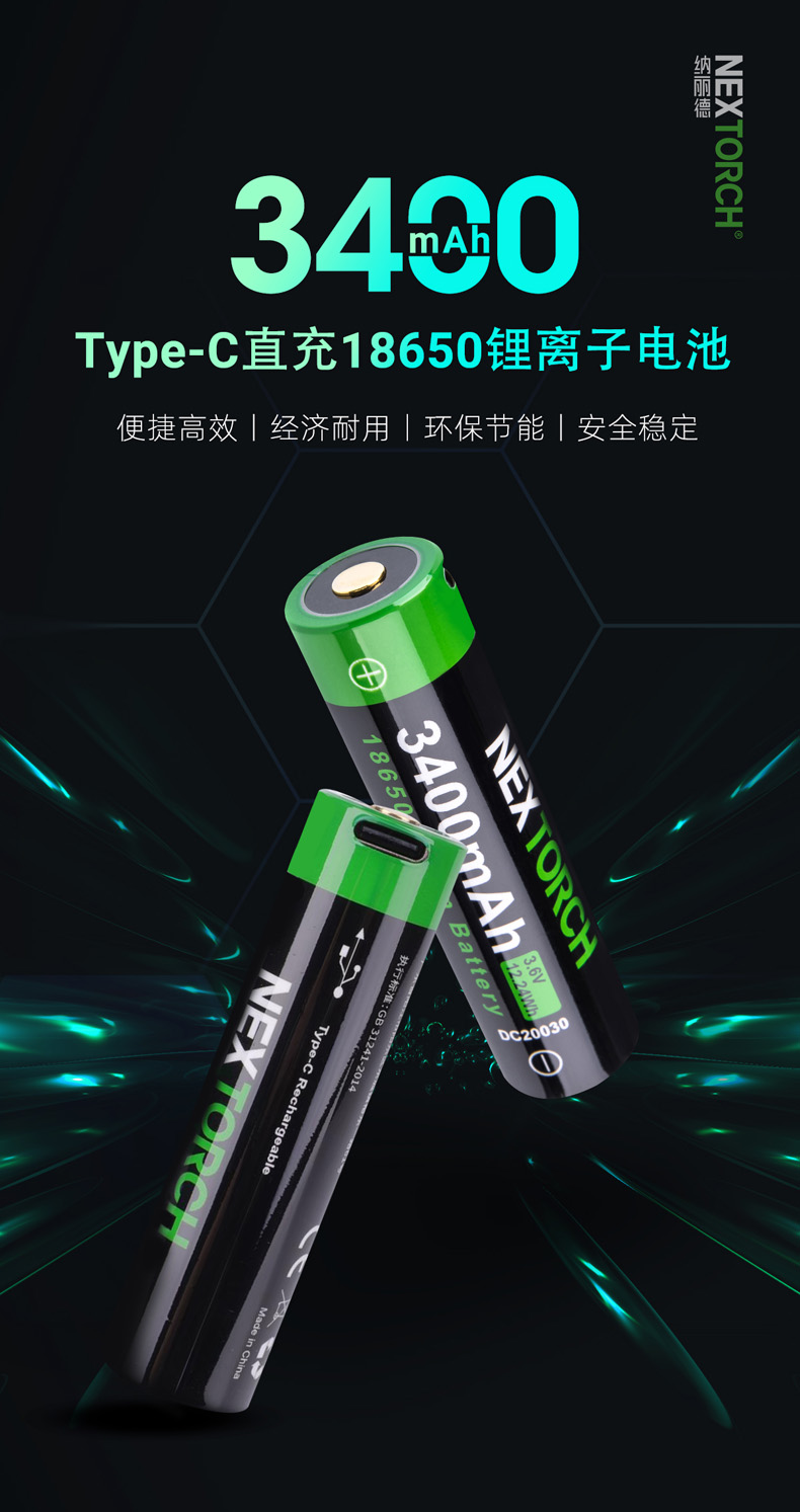 纳丽德–全球专业的移动照明装备品牌-3400mAh Type-C直充18650电池