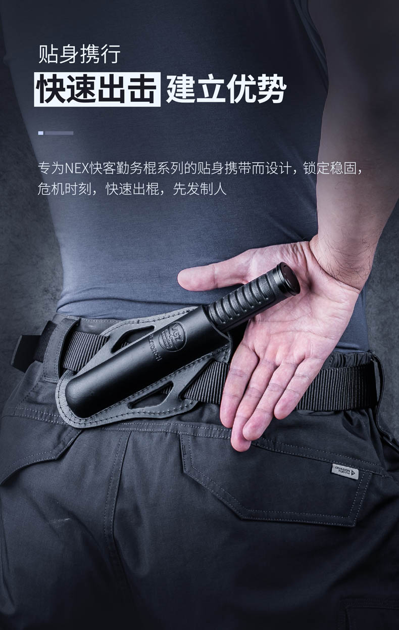 出警在外时,机械棍是随身必选装备之一,如何让勤务棍做到随身携行而不占用双手,在执勤需要时又伸手可用、及时出击,是勤务棍套存在的意义。V67牛皮勤务棍套,专为NEX快客勤务棍系列而生,不仅贴身携行、做工精细、外形简约,而且携行稳固,让你在激烈运动中不必担心勤务棍的掉落而分心,助你在危急时刻及时出棍,抢先一步掌握战机。