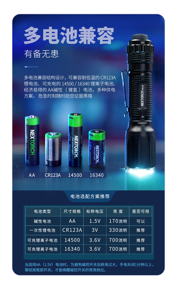 臧天朔: 看上这手电,所有ta30的功能它都有。因为它这个多电池的兼容,作为备用手电,实在是太棒了。