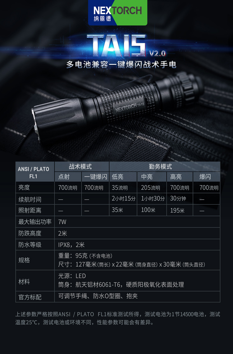 纳丽德–全球专业的移动照明装备品牌-TA15 V2.0战术手电