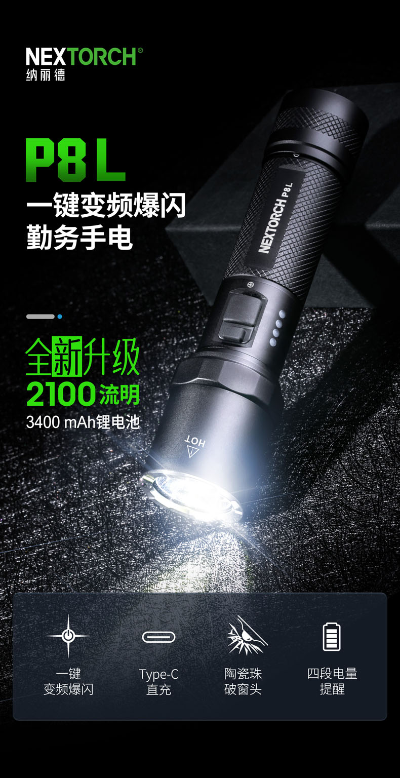 纳丽德–全球专业的移动照明装备品牌-P8L一键变频爆闪勤务手电