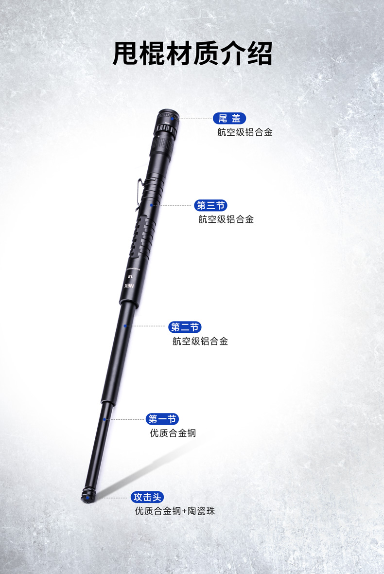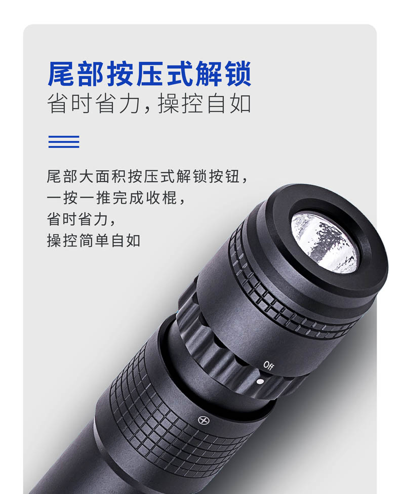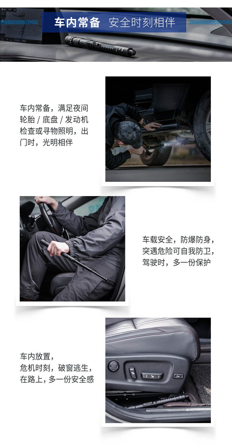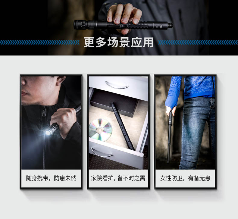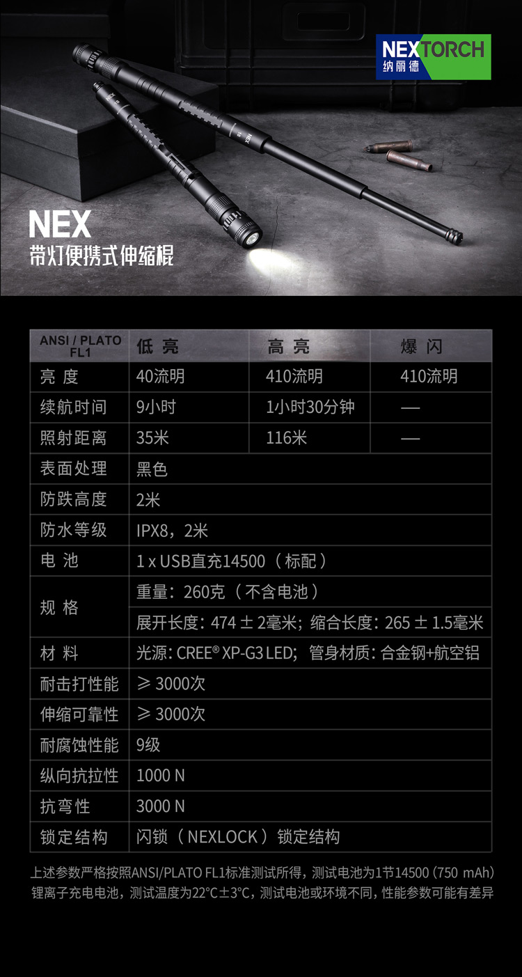 颠覆传统的NEX带灯便携式伸缩棍,便携棍与手电筒的强强联合,集强光照明/车载防身/贴身防卫/破窗逃生于一身, 让照明与防身功能同样出色,真正做到一物多用,满足你所需,是你一直在寻找的理想EDC装备。