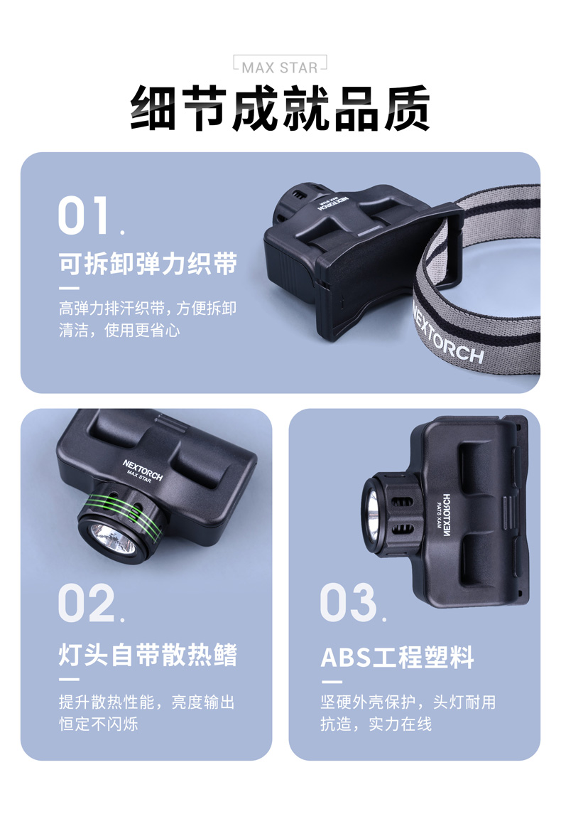 纳丽德MAX STAR,简化操作上的繁琐和复杂,为双手减负;提升照明的亮度,为长距离大范围照明带保障;融入贴心的设计,为使用更添信任。