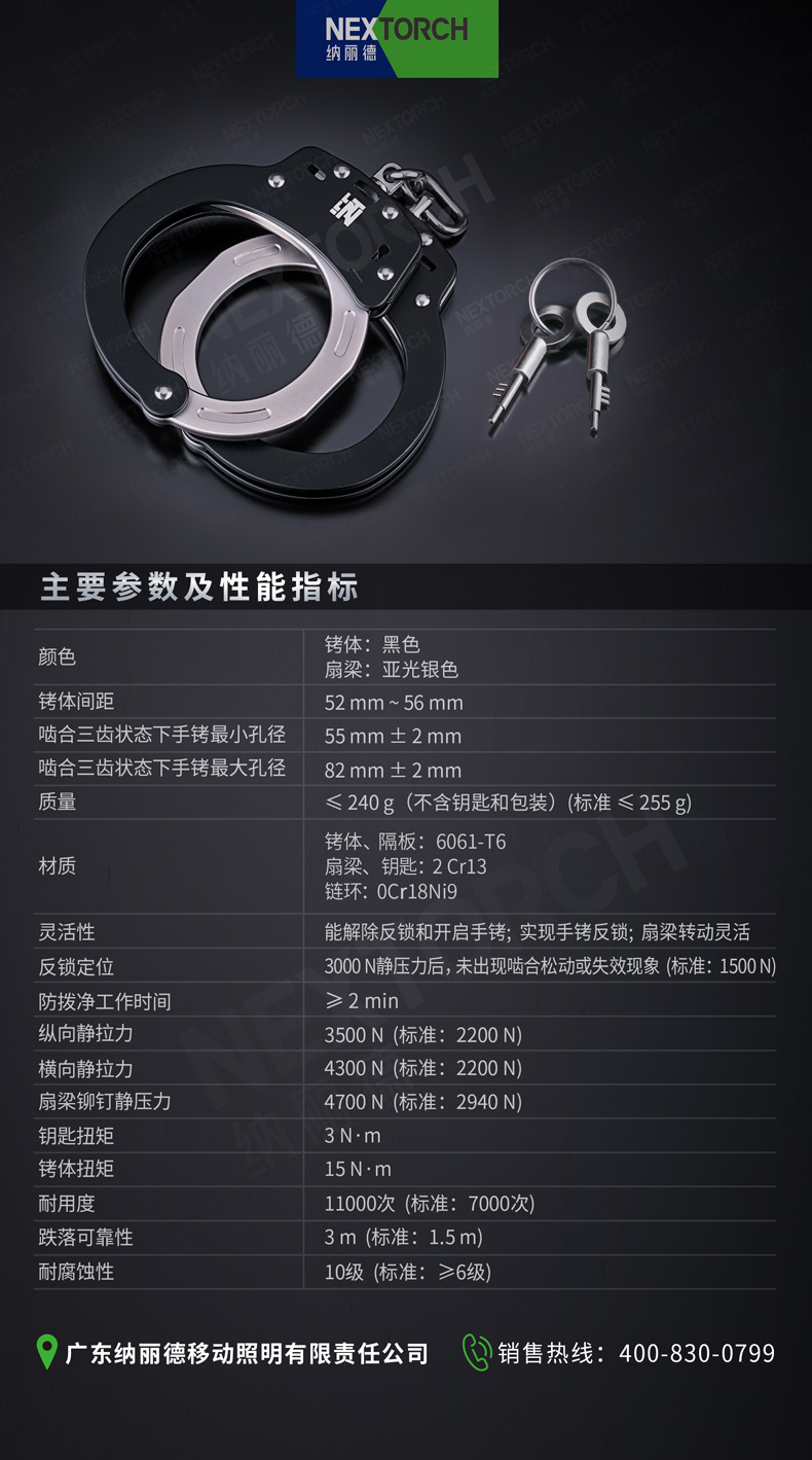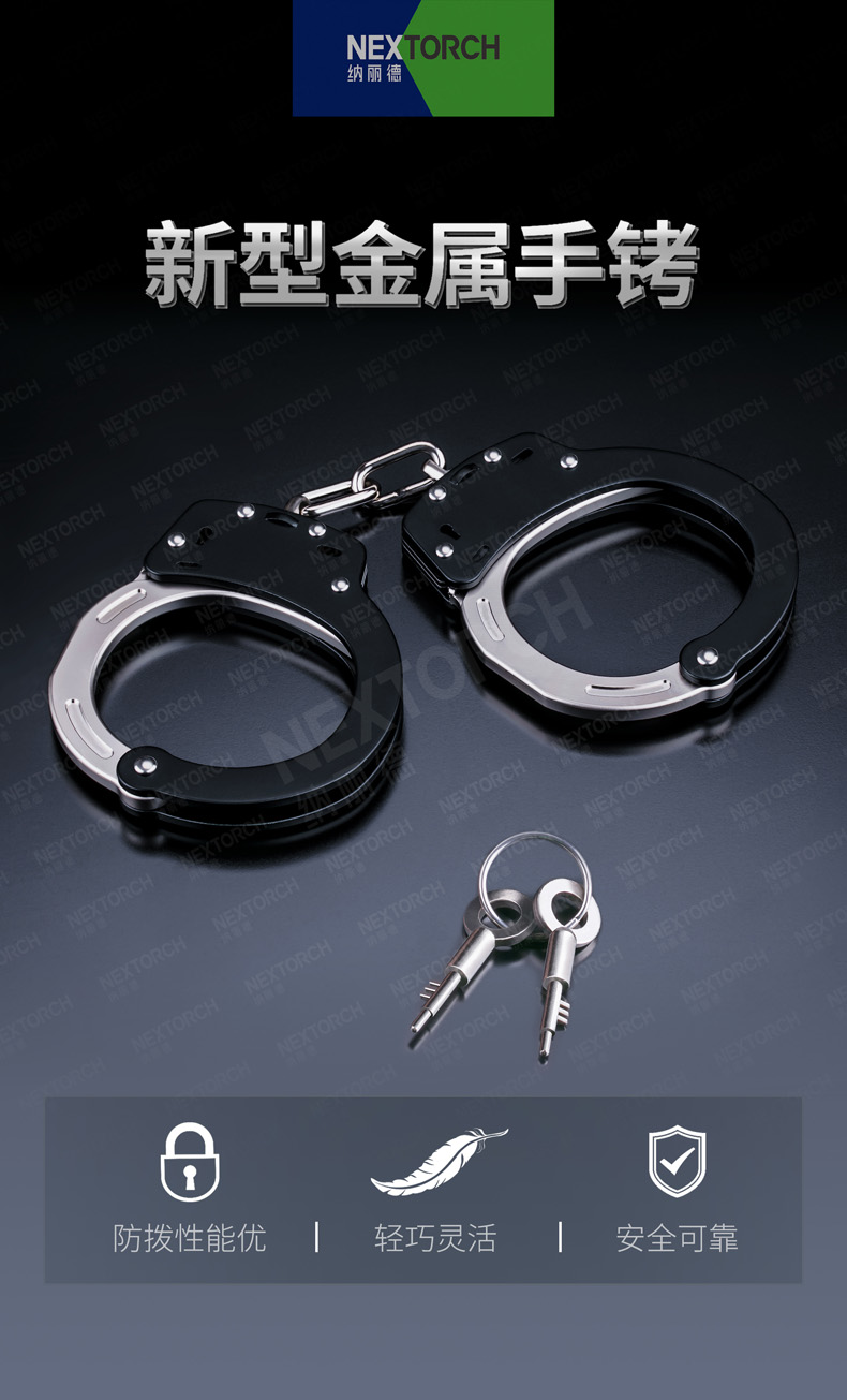 纳丽德–全球专业的移动照明装备品牌-新型金属手铐(黑色)