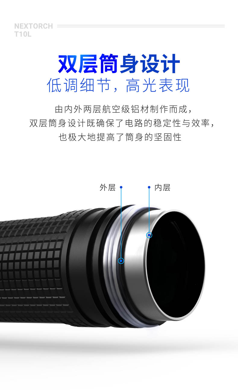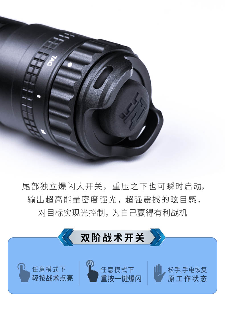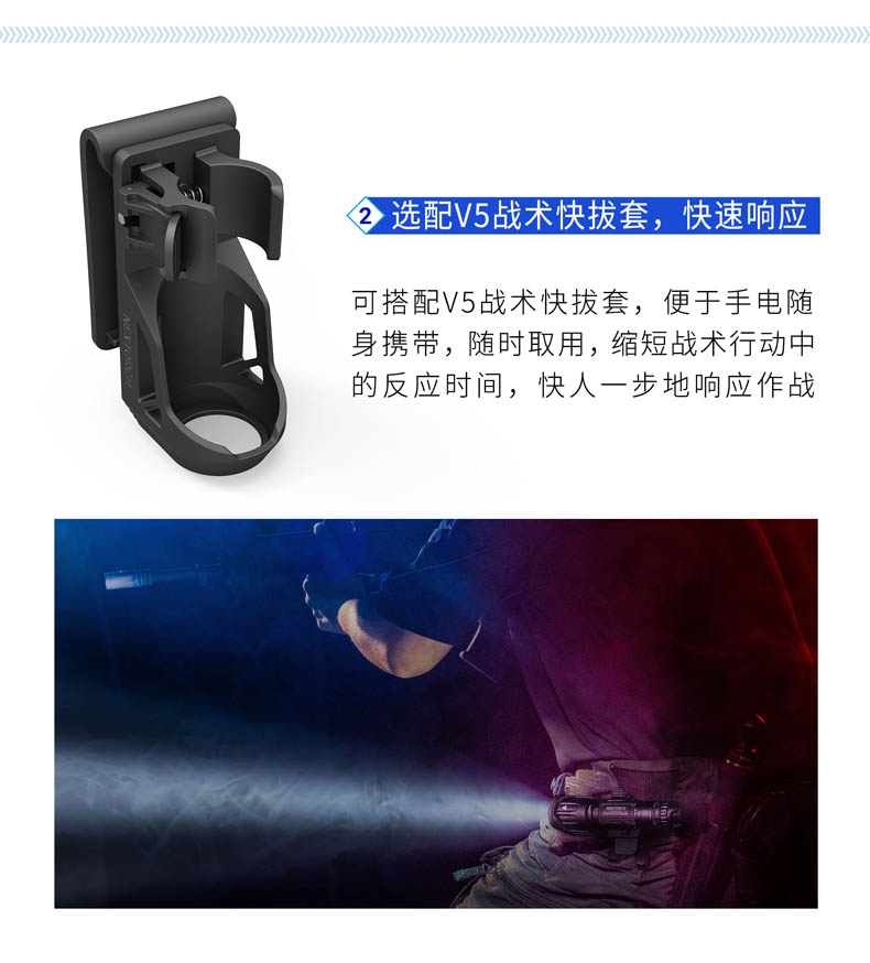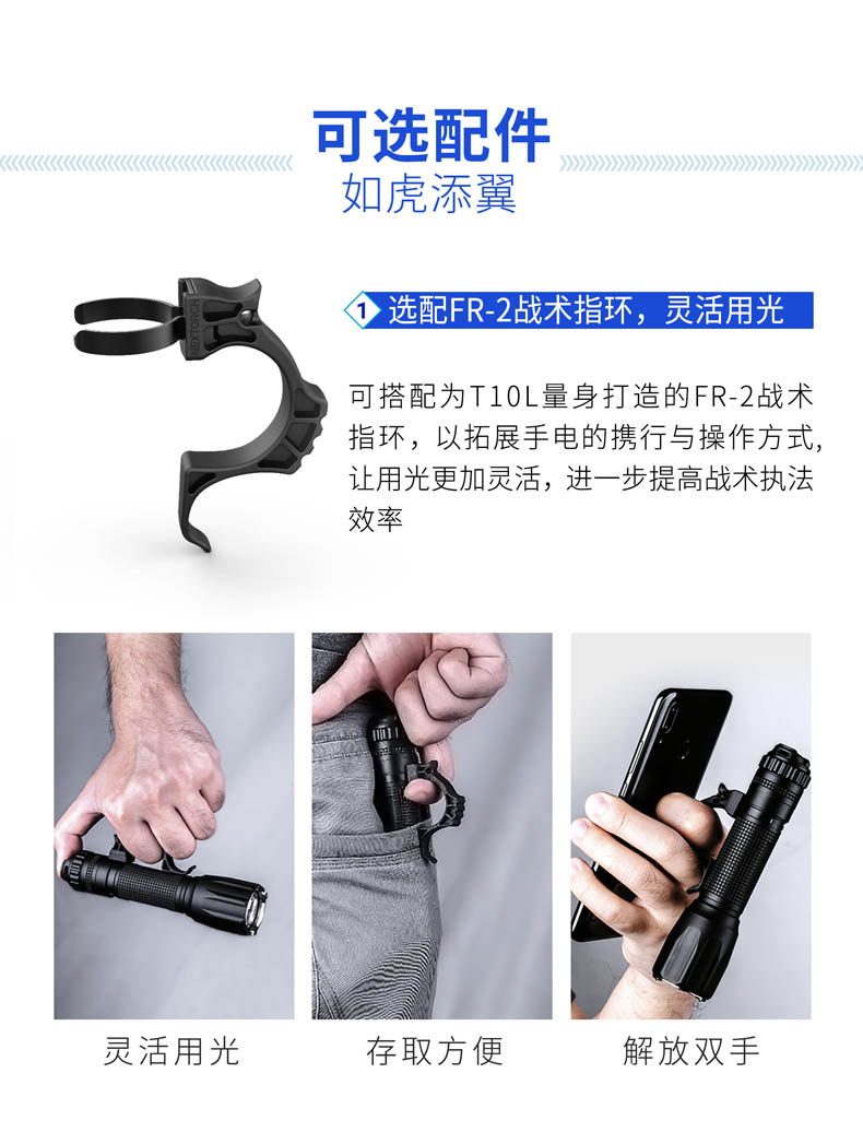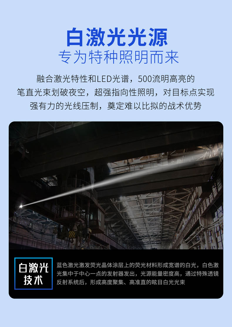 为了将白激光光源的战术价值发挥得更加淋漓尽致,纳丽德融合纳家经典战术手电TA30 MAX与白激光技术,带来一款既有战术手电简单清晰操作逻辑、一键爆闪瞬时响应,又有白激光光源高亮度、高准直特性的白激光战术手电T10L,各自优点的出色结合,为一线勤务工作奠定难以比拟的战术优势。白激光光源爆发巨大能量实现其他LED手电望尘莫及的千米射程,精悍紧凑、单手可控的体积颠覆传统探照灯硕大笨重的形象,超强指向性照明实现强有力的光线压制,远处追踪、定位、搜索、瞄准更有效。