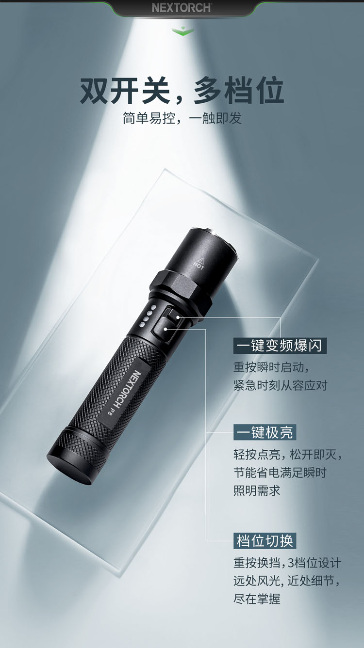 主页 > 产品 > P系列(执法系列) > P8高亮便携EDC小手电升级1600流明