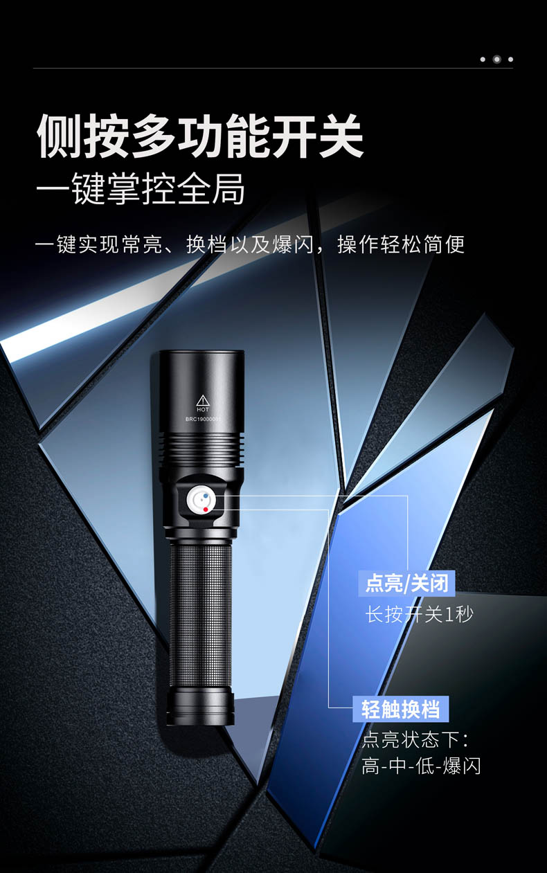 ·金属双阶按压开关 + 磁控旋转开关,单手切换
