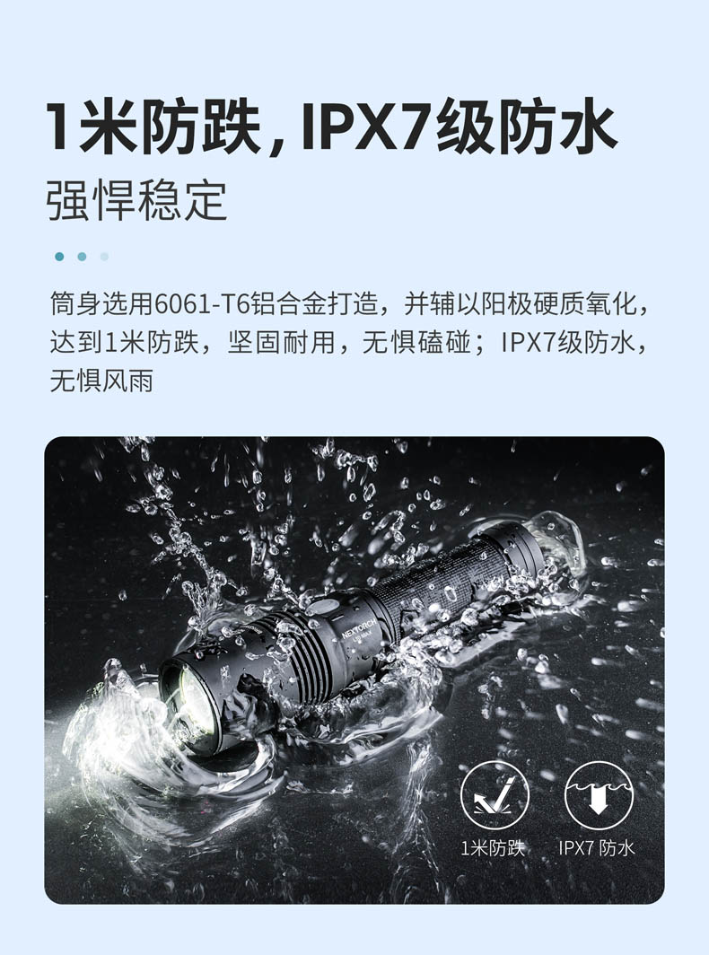 ·一体式铝合金结构,2 米抗摔,IP67级防护