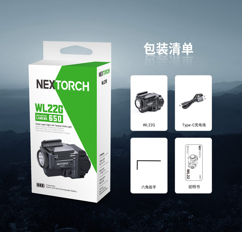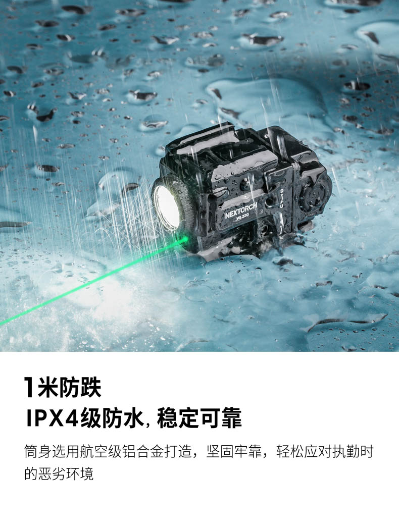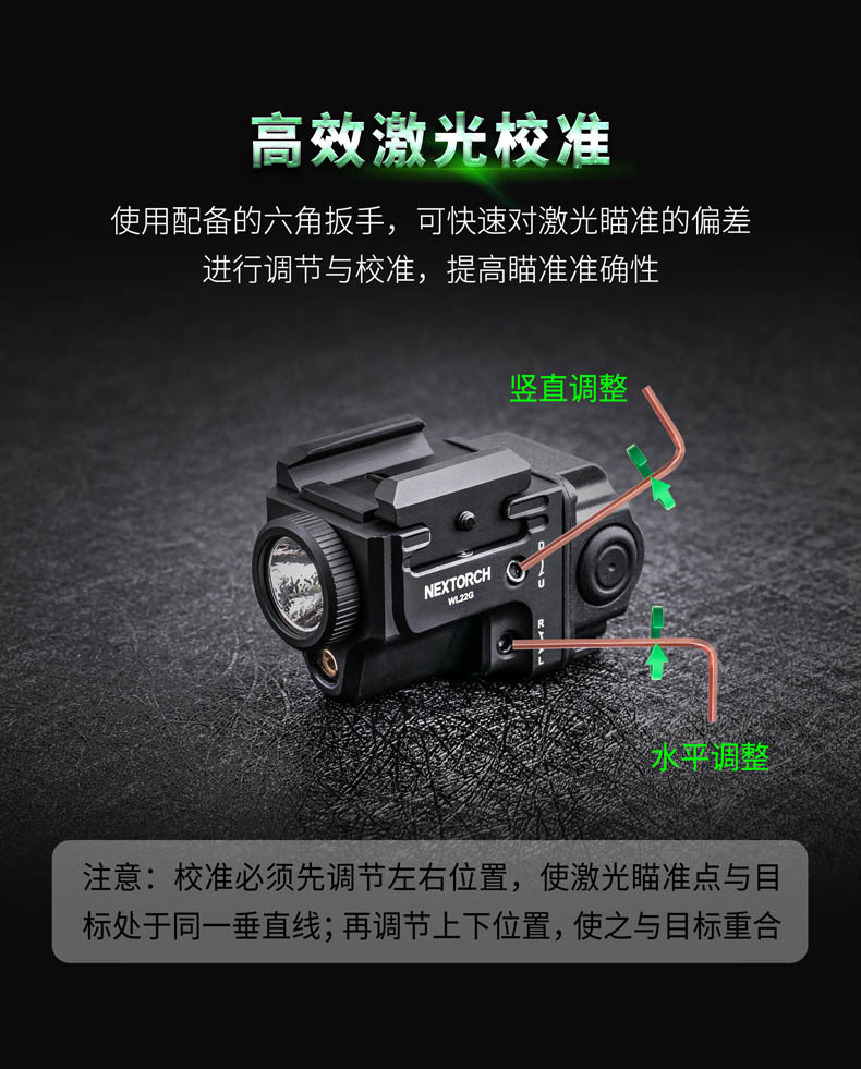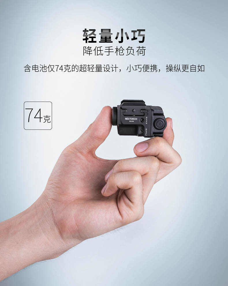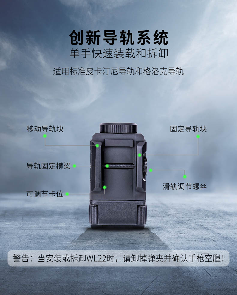 纳丽德WL22双光源合一枪灯,整合照明识别和激光瞄准功能,更能够辅助射击或震慑潜在的攻击威胁。提供WL22G白光照明+绿激光瞄准、WL22R白光照明+红激光瞄准,可根据不同任务需求适当搭配,成为暗弱光执法下的有效助力。适配紧凑型和全尺寸枪型,及适配大部分带灯仓的枪套。