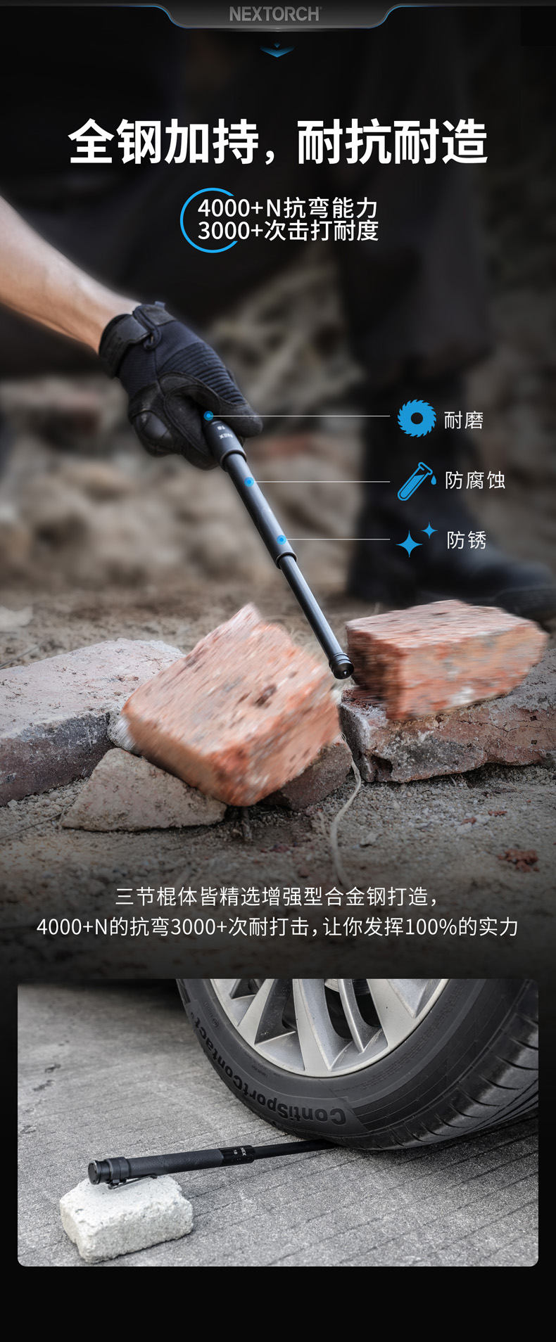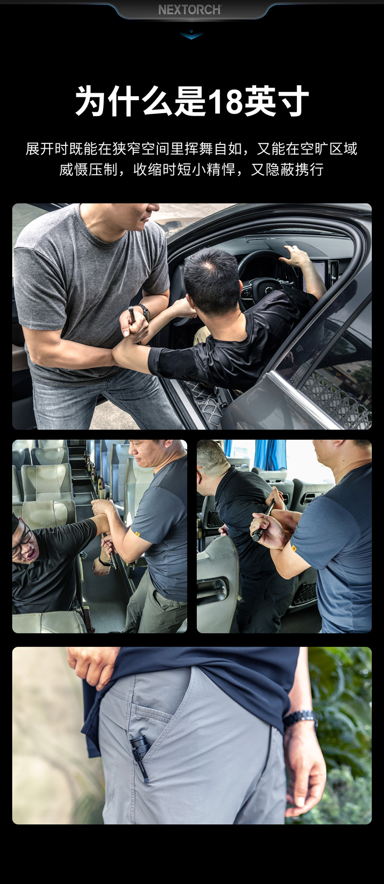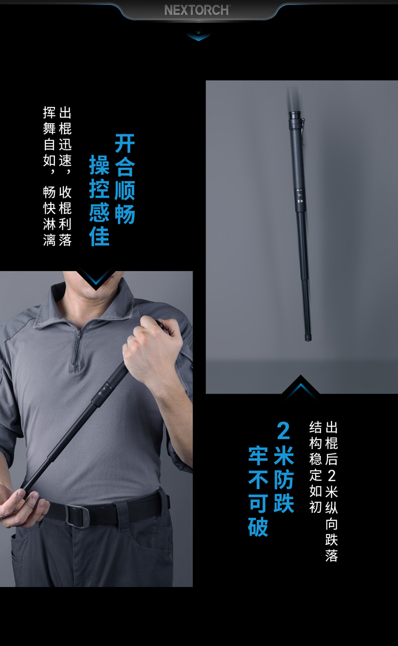 NEX行者18"皮质手柄全钢版便携棍小巧强悍,隐蔽携行。自主研发的专利“闪锁”锁定结构,攻克机械甩棍跌落易解锁、易损坏的难题,实现了机械甩棍稳定性的创新性突破。2米跌落牢不可破,开合顺畅,操控感佳。精选42CrMo增强型合金钢锻造,耐抗耐造。手柄甄选优质EPU皮革,柔韧耐磨、握持舒适,减震防滑。尾部大面积按压式解锁省时省力,防误触设计,大力戳击不收棍。便携棍标配可拆卸抱夹,便于甩棍随身隐藏携行,随时出击。