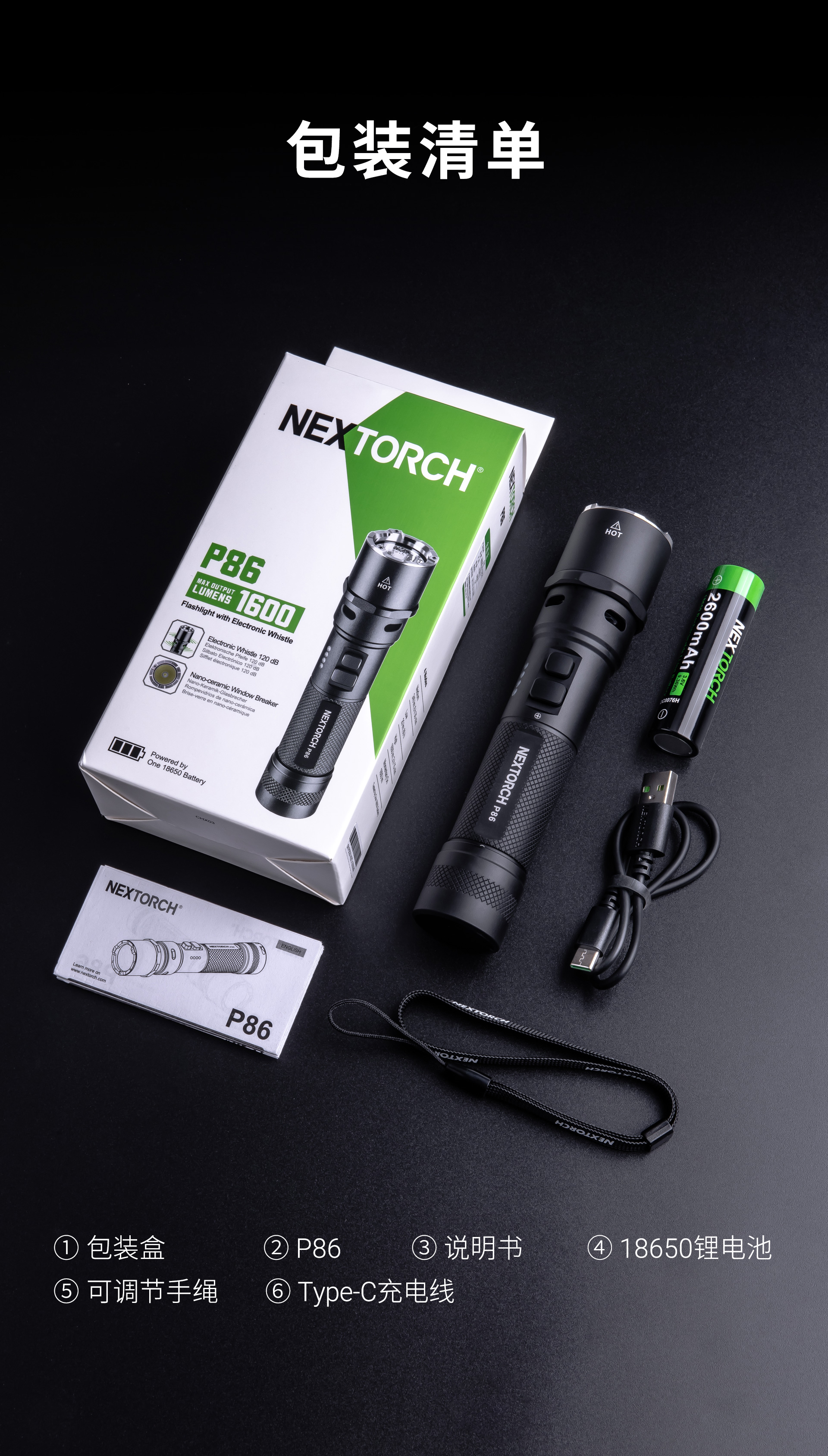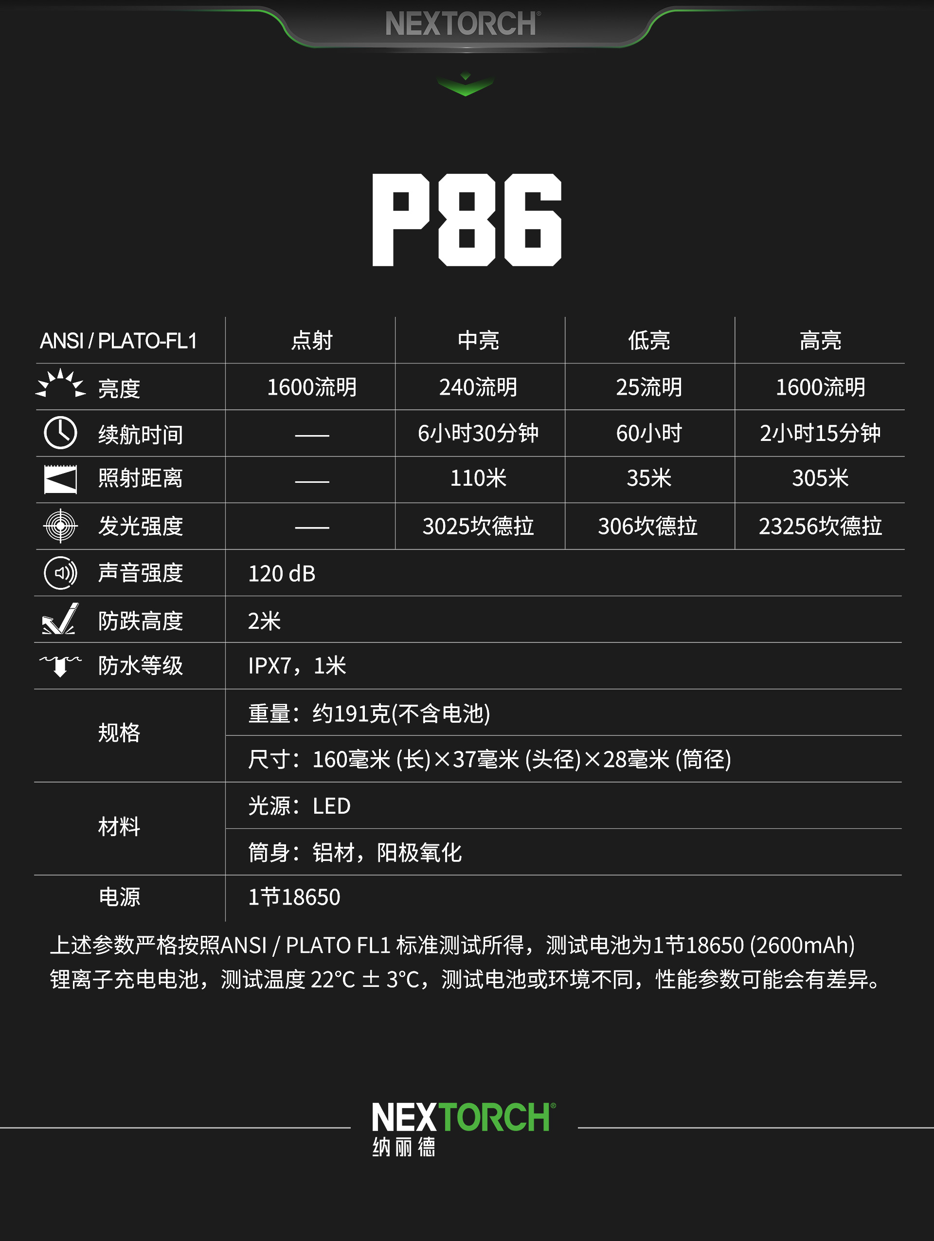纳丽德–全球专业的移动照明装备品牌-P86声光合一电子哨手电