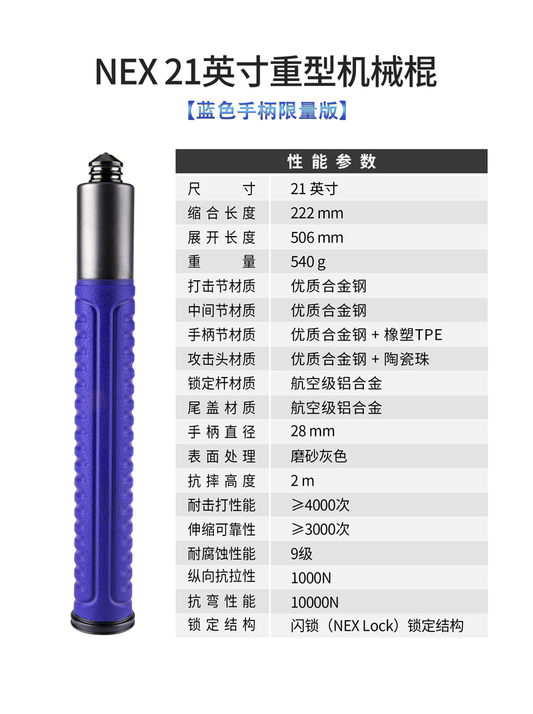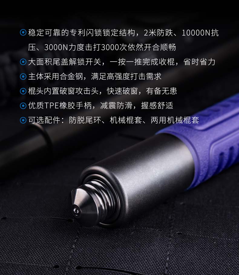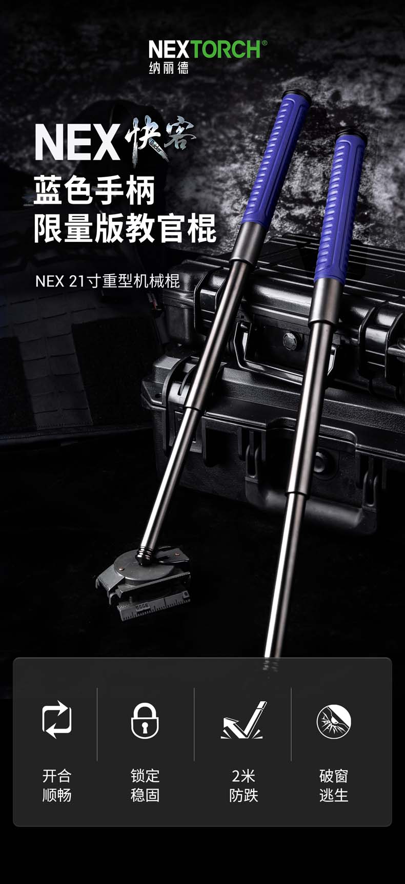 延续纳丽德自主研发的“闪锁”锁定结构,将2米防跌、顺畅开合、挥舞不晃动等优点融合于一体;首次推出了警察蓝配色的手柄,力求从外观到内核,让专业与可靠贯穿始终。