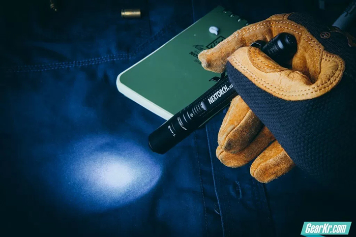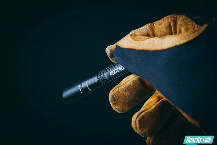 从握持上来看,这样一款小巧的手电虽然拿在手里不够饱满,但是由于方形滚花防滑纹和比较突出的尾部按钮,使得单手带手套操作并不困难,但是如果要变换亮度档位,就必须得双手了,单手操作并不是十分方便。