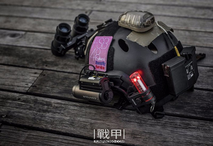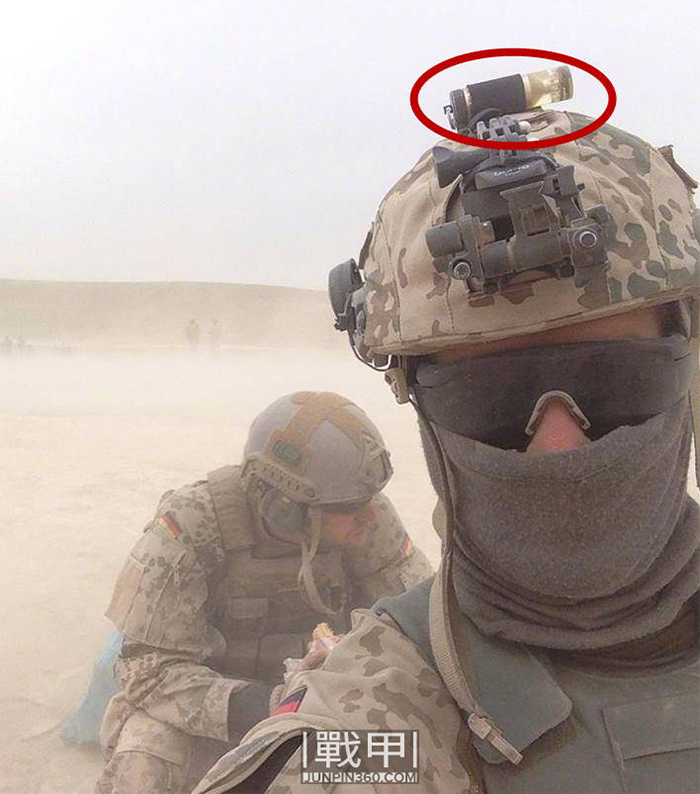 有意思的是根据挂环位置来看,上图的美国海军特种部队成员在头盔上用皮筋固定了一枚GT AAA,在其背包上又固定了一枚GT AAA PRO。