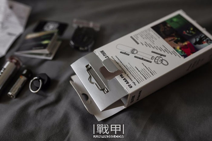 本次笔者拿到的是一款红色信号灯,也是常见的警示&信号用灯色,由于其波长长因此传播距离远,色彩特征明显,且由于笔者主要使用环境在城市,若选择黄色很容易堙没在路灯色彩中。所以没有所谓哪种颜色的光最好,只有最适合使用环境的光。包装盒还是纳丽德的经典样式,盒盖部的金属耳挂笔者很喜欢,潮品包装的感觉。内容物也很简单:灯体,Energizer AAA电池,挂绳,说明书,纳丽德迷你产品册和厂商二维码塑胶卡(做书签倒是蛮顺手来着····)