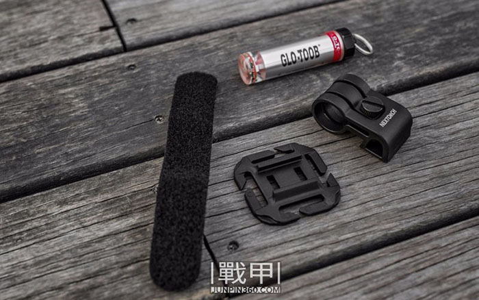 Pro的性能如此出众,但是身为一个圆柱体,除了拿皮筋胶带D环自行DIY之外确实没什么好主意能稳固固定在头盔等不规则表面上,这就大大限制了其使用范围。虽然早年有生产过一种类似Safariland霰弹携行具的抱夹,不过那仅为织带设计,上头盔还是得靠胶带皮筋硬来。然而纳丽德作为一家为用户着想的企业自然不会放弃推出相关配套适用件,所以就有了专为GT AAA系列设计的GTK多用途搭载系统。整套系统的塑胶件采用FRN耐腐蚀材料制造,包含3个附件:双面魔术贴粘条,双向织带固定底座,ARC导轨适配底座。