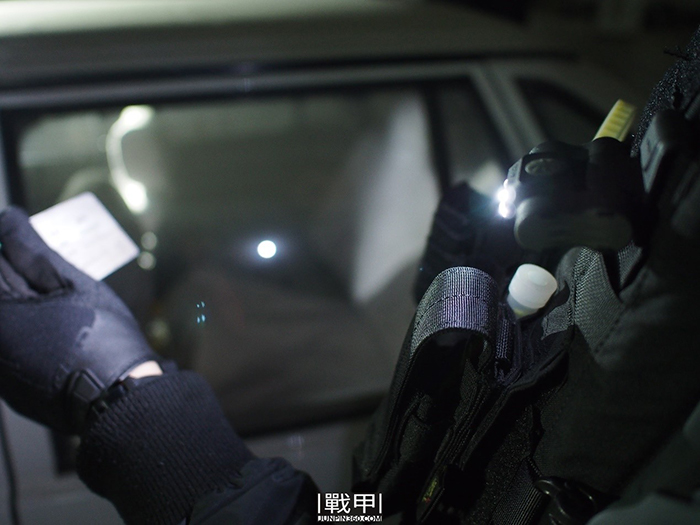 但是,相比传统的警闪肩灯,由于只有红蓝两颗单色LED,UL11在远处并不如传统肩灯显眼。笔者写本篇文章时适逢帝都空气严重污染,因此从远处来看红蓝频闪的亮度也自然降低。当然,装备是给人用的,我们并不能要求它能够适应一切环境。脱离UL11上继承的UL10设计的优点来讲,UL11的频闪和亮度都不会使人不适,鉴于这些特性,笔者认为UL11在室内执勤或近距离盘查时能够最大限度地发挥其优点。