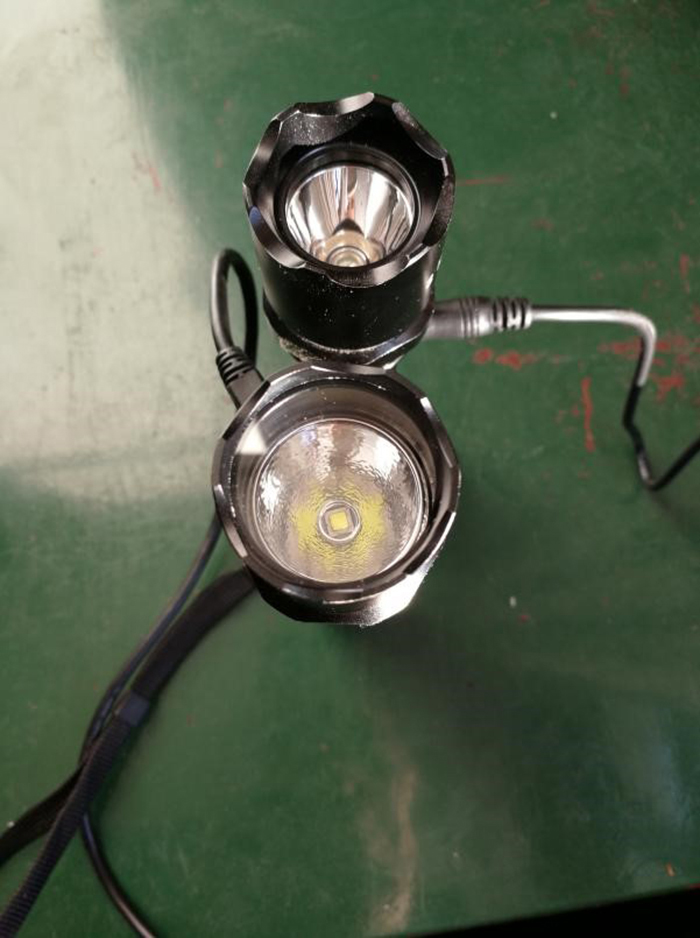 P60的反光罩做了进一步防眩处理,使手电光线分布更为均匀,而公发手电只是简单做了反光膜镀膜,但直观看来公发的更加炫亮。