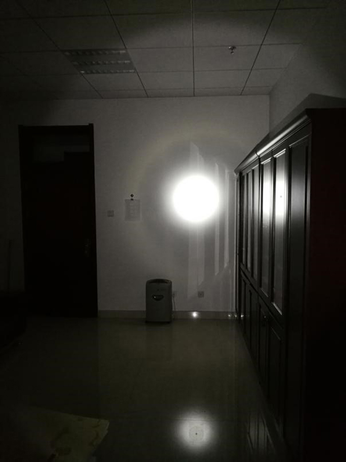 从测试效果图片即可清晰看出来,P60照出来的光场均匀,公发手电中间光斑较为明亮,除了聚焦光斑外,光场其他部分不如P60光线分布均匀, P60照明范围明显较大。
