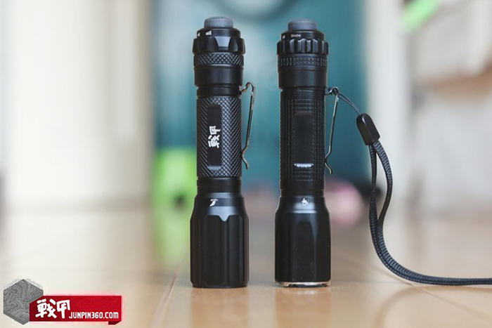 E6的档位选择旋钮和尾按都在尾盖上,理论上讲可以单手甚至单拇指完成全部操作,但实际操作中发现E6的亮度选择旋钮虽然档位清晰,但阻力也不小,靠一个大拇指完成操作略困难,不能有效的一档一档拨动,只能靠拇指和食指一起转。加上战甲刻字版,我已经过手3个E6了(自己买了2支),旋转力度都不一样,有的松点有的紧点,我更倾向于略松一些,磁环旋钮设计的颗粒感更强一些,能够单拇指精准操作。