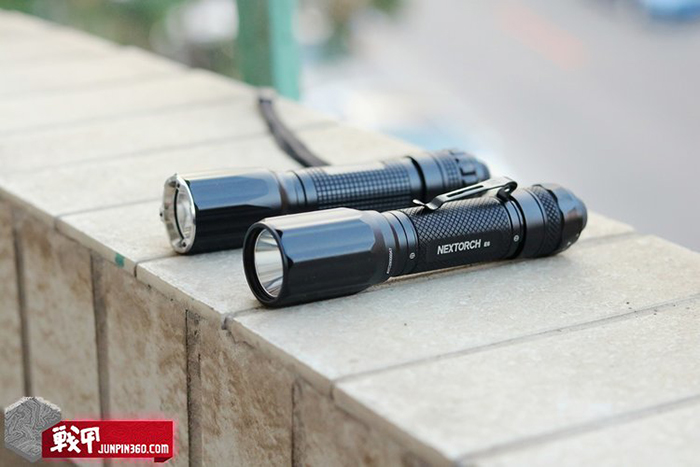 文中出镜的还有纳家E51,自带usb口拧开筒头就有,尾按正向开关,开机默认高亮,三档。光斑做的非常好,体积很小。