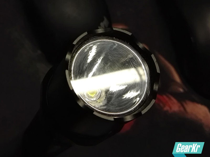 由于P60定位为勤务使用,平时磕碰摔打情况比较多,所以灯头出光部位采用强度较大、不会碎裂且透光的PC材料,用了好几天所有已经有一些细微的划痕。