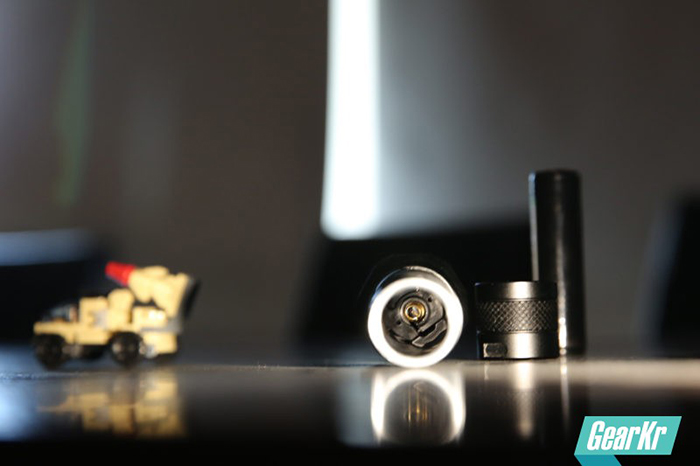 筒身内侧灯头处是正极镀金弹簧,压着电池感觉弹性适中,桶壁内侧非常光洁,没有加工痕迹,P60采用端面导电的方式,这样稍拧松尾盖即可实现完全断电。
