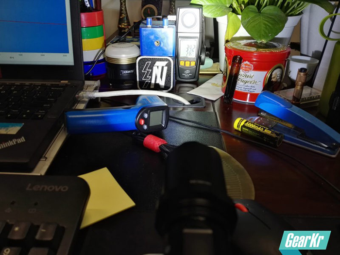 做照度测试的同时,使用红外线测温仪器测量灯头温度,室温25.1℃,取温位置为灯头序列号处,每10秒记录一次温度数据,共密集测试20分钟。另外,每2分钟还测了筒身NEXTORCH的O的位置的温度,以判断会不会烫手。