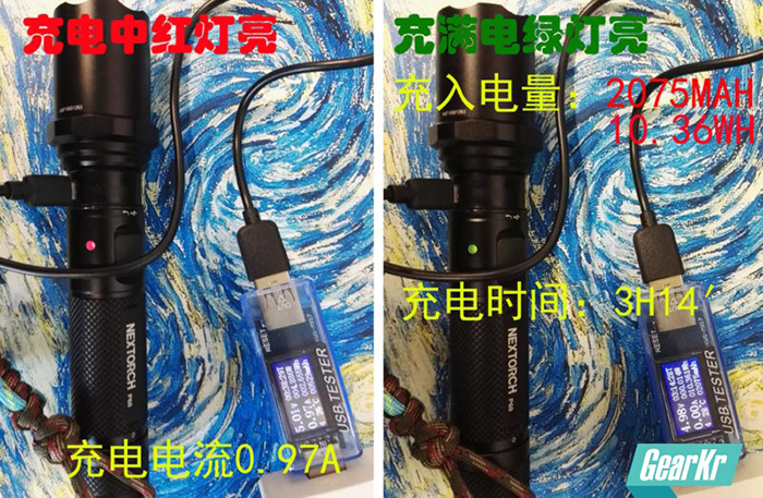 3小时14分25秒,手电自动关闭,此时,红色指示灯还在闪烁,关机后无法再次打开手电。