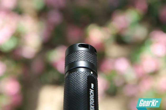 P60灯头比筒身稍粗,一体的六幅攻击头比较含蓄,灯头外壁表面光滑,除根部用白色印有本手电序列号外,没有过多装饰,最明显的就是没有前面说的纳家标志性的八条楞。