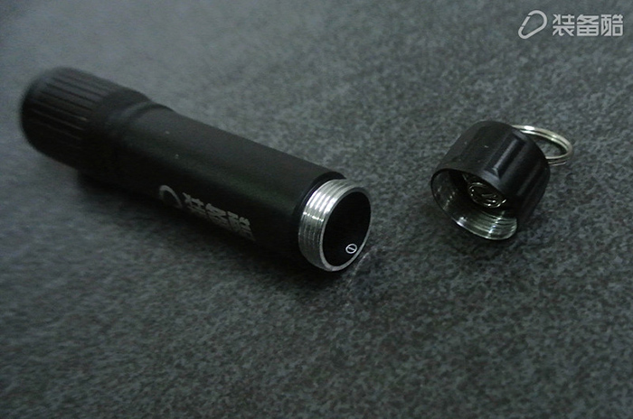 尾盖与筒身相互为螺纹紧固,将尾盖退出之后可以看到筒身内壁有电池负极标识,提醒使用者正确放置电池,但稍有常识的人按到电池仓盖内部的弹簧便已知道电池放置方向了吧。