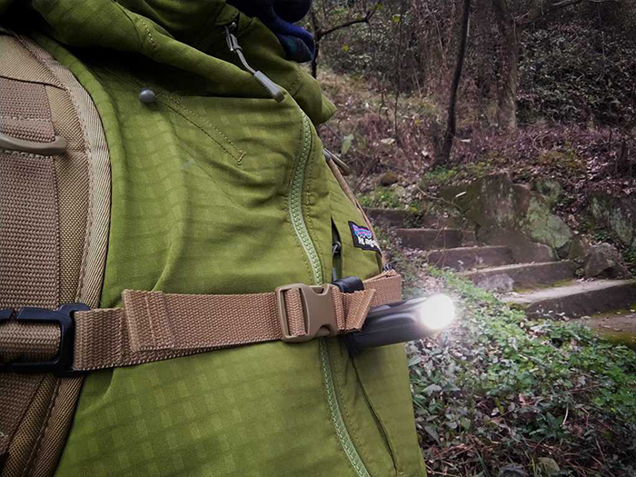 此时可以将之装备肩带、胸带获知背包的MOLLE外挂系统上做多位置的照明。