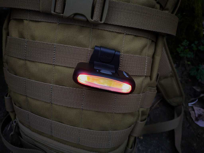 两个档位的白光源的目的是让我们看清被照射的环境,而红光源的存在有让我们在户外的时候能被别人清晰的看见。如此也是便于夜户外下团队协助、安全提示的效果。