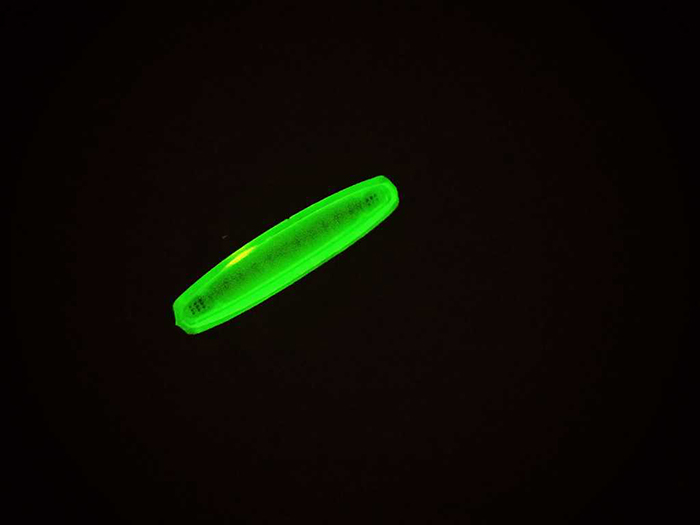另外,值得一说的是透镜外周圈有夜光材料的设置,这在夜间使用的是有带来了便于找寻的效果。