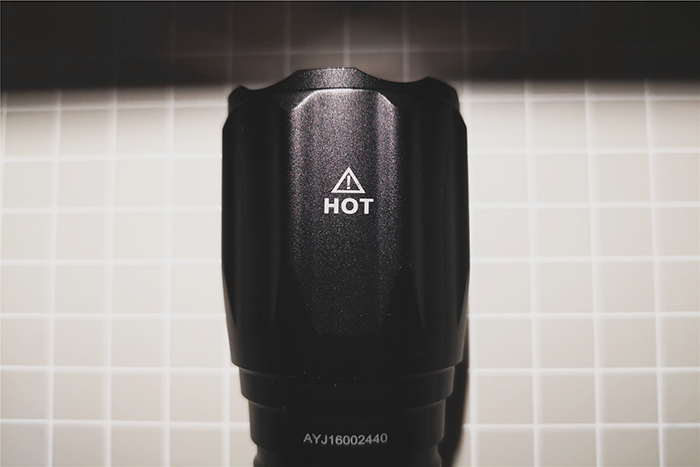 T5开关设置在尾部,分高亮-中亮-低亮-点射-爆闪-SOS六模式,由于其定位不是专业战术手电,偏向日常使用,在战术环境使用时,其常亮/点射/爆闪之间的转换手感与逻辑比较模糊,如在快速点射时或点射变为常亮时有可能意外触发爆闪,在常亮模式下无法快速转换到爆闪。