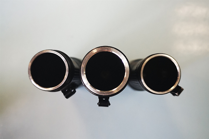 将T5与TA01、TA30对比可知T5筒身较厚,且尾部电池仓螺纹圈数达到5圈,不考虑灯头密封抗压性能的话,其防水防尘极限能达到宣称的IPX-8标准。