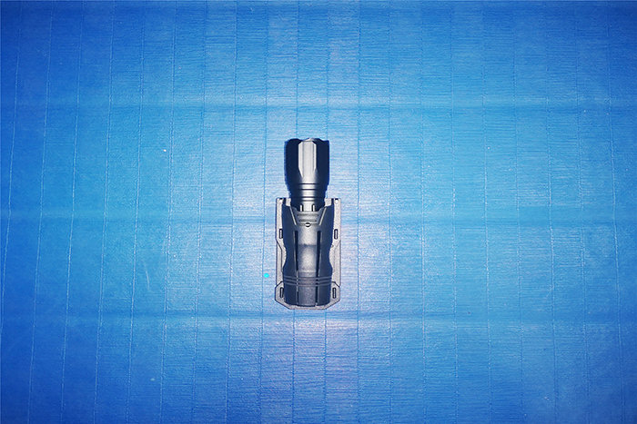 至于便携性,经过测试,T5可以完美兼容纳丽德自家V6手电快拔套(头部朝上),与V70两用棍套(尾部朝上)。