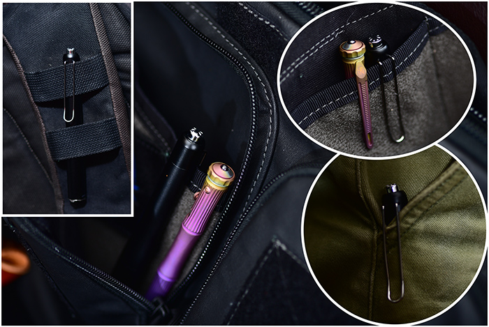 K3RT采用了笔形外观,非常简约,搭配不锈钢的抱夹使得它极为方便的携带和取用,不管是MOLLE系统、裤兜、还是通勤包,都能找到合适的收纳地方,背夹的另一用途就是可以起到防滚落。