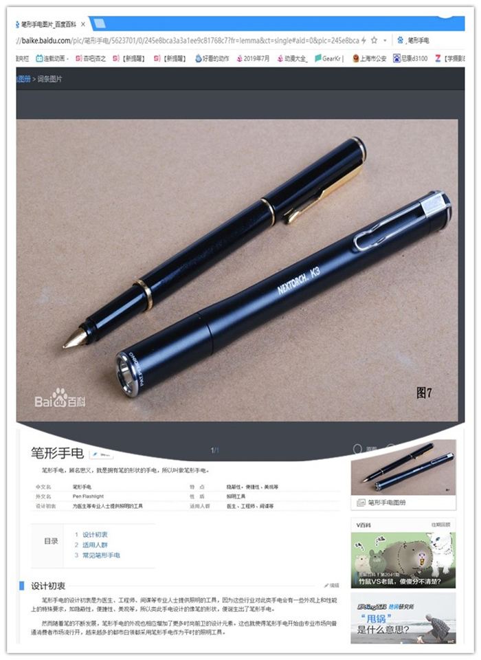 “Pen Flashlight(笔形手电),顾名思义,就是拥有笔的形状的手电,所以叫做笔形手电。这种手电的设计初衷,主要就是为医生、工程师、或者是间谍等专业人士提供照明的工具,因为这些行业对此类手电会有一些外观上和性能上的特殊要求,如隐蔽性,便捷性、美观等,所以类此手电的外形设计成生活中常见的书写工具,也就是笔的形状。”