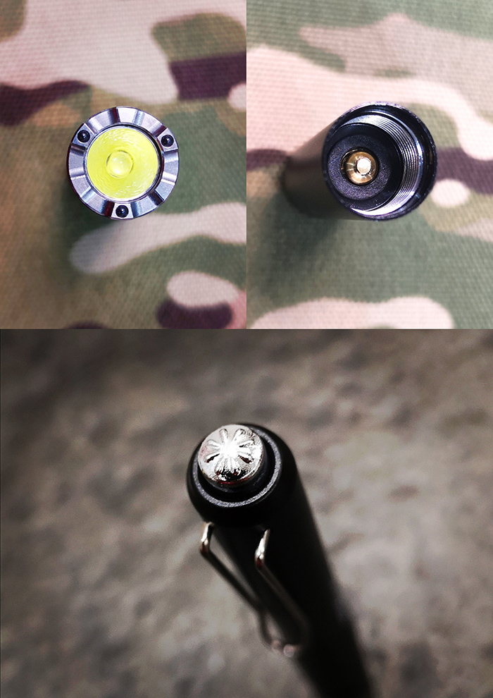 另外,考虑到破窗可能存在碎片损伤灯头镜片的情况,K3RT使用钢化镀膜玻璃取代之前K3系列常用的树脂镜片,透光度和坚硬度都得到了保障。从灯头部螺纹口可以看见内部的铜制按掣,只有旋紧头部到电池仓上,使铜制按掣接触到位,再操作手电尾部开关,才能点亮手电。所以可以将其作为接通电路的物理开关,旋松几圈螺纹便可起到防误开的作用。