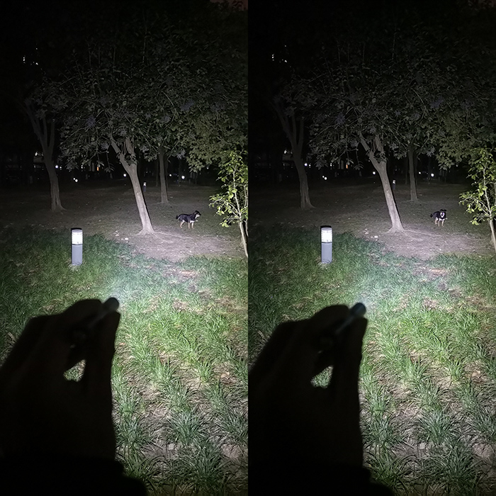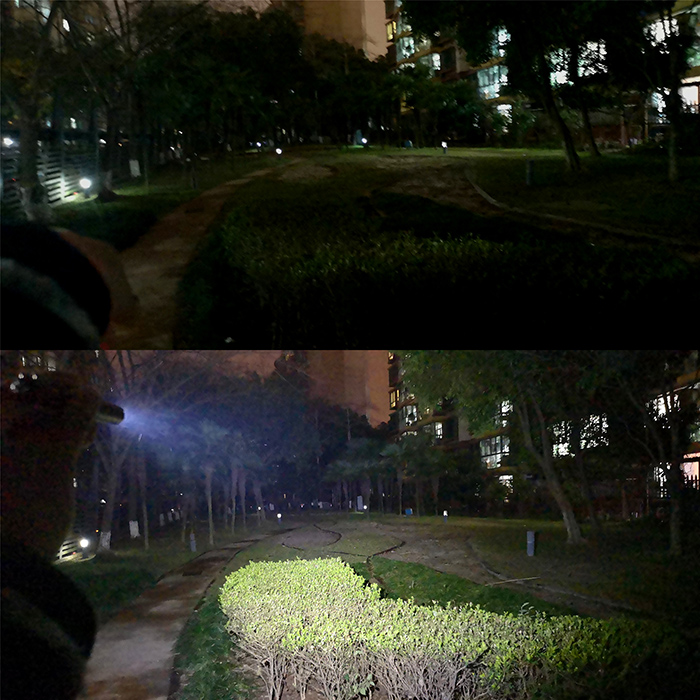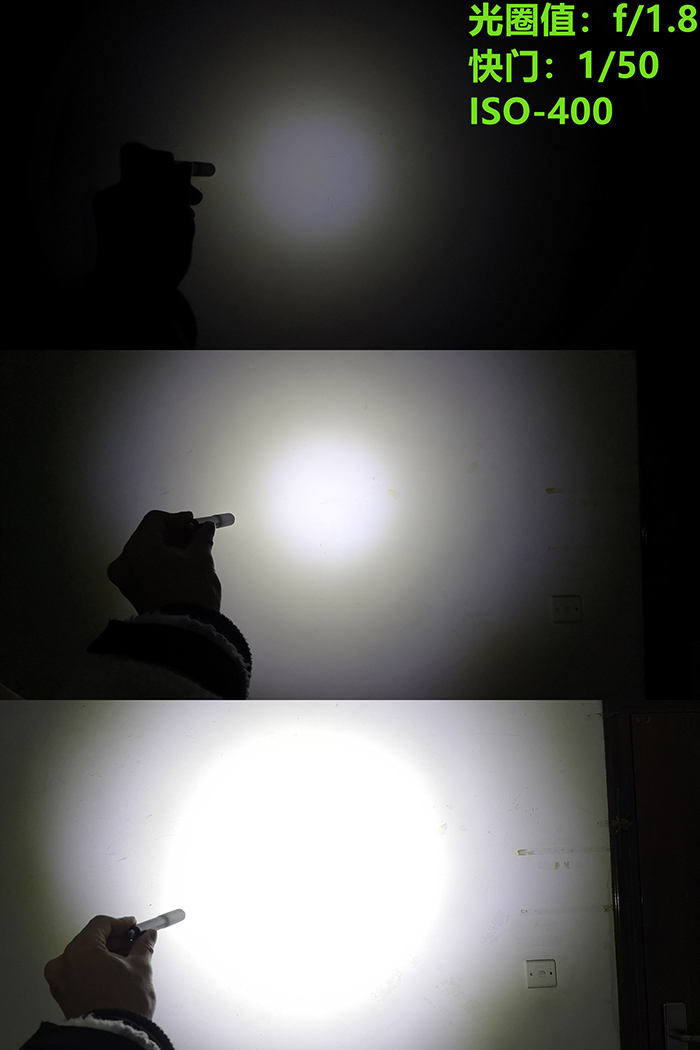 尽管由于笔形手电的定位,对远射的要求不是很高,不过在户外的夜射表现依然令我满意,距离和范围都管够,光斑过渡也舒适得多,3个攻击齿在近距离下产生的阴影轮廓也不存在了。