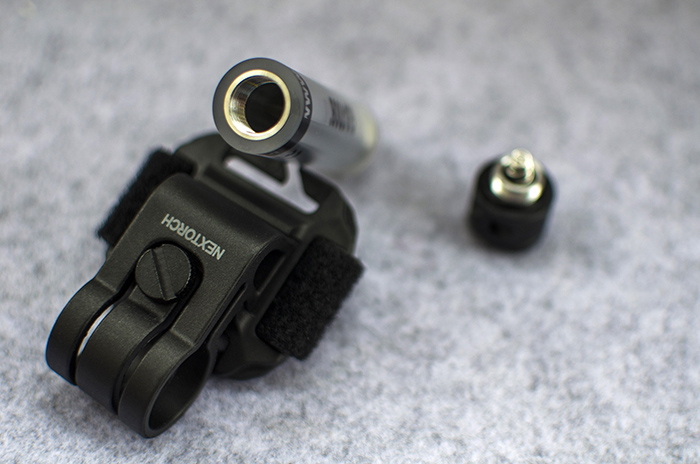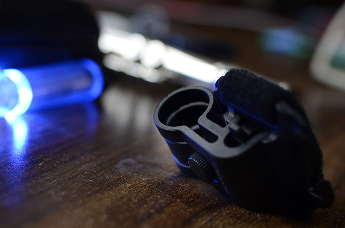 信号灯放入卡环后,可以拧动夹持部位的固定螺丝,虽然螺丝外沿有纵向防滑条,但是徒手却不容易拧紧。