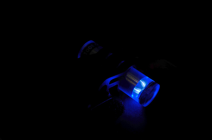 GT-AAA Aurora采用灌胶成型工艺铸造,发光体位于灯体顶部内侧的锥形表面,一共三个发光体,互成120°,这样就能保证任何位置都能看到至少两个光点,形成更明显的可视效果。