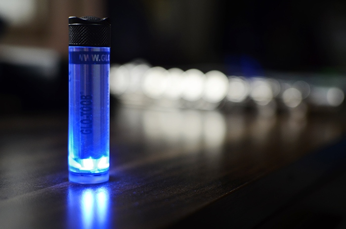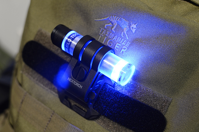 蓝光荧光色段的显色更加清晰,因此在夜钓、抓蝎子等场合更适用,不过GT-AAA Aurora的亮度比较小,还是闪烁起来作为信号灯使用更合适。