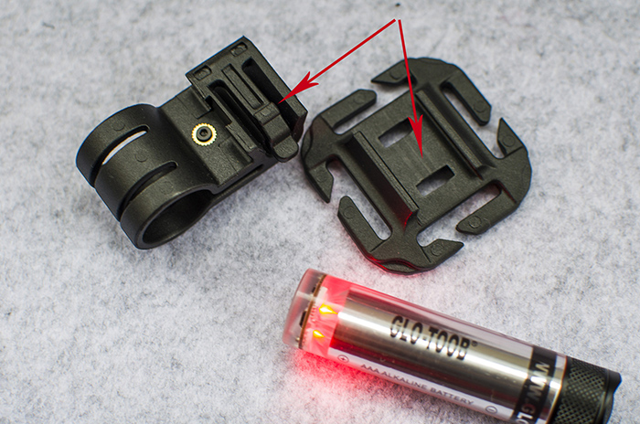GTK可分为装载背板+卡环底座两个部分,两部分通过导轨固定,弹簧扣锁定。卡环可调节松紧,适合夹持外径在18.8mm~19.8mm的信号灯。