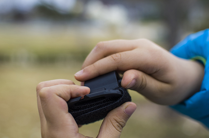三是通过标配的大面积双面魔术贴,将其固定在背包、衣服、帽子、头盔等带有魔术贴的位置,魔术贴面积较大,粘贴很牢,不用担心掉落。