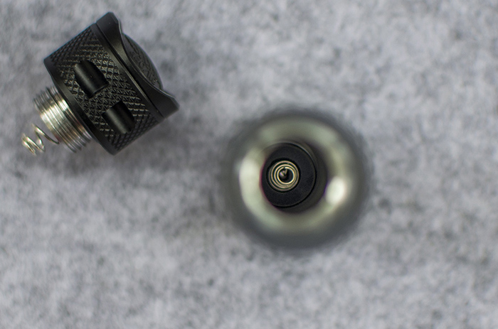 设计的初衷就是为了性能的稳定。GT-AAA Aurora尾盖是旋入式,采用三角形螺纹导电,负极同样为长行程弹簧,前后双弹簧配合,更容易压紧电池,避免剧烈晃动产生的断路跳档。