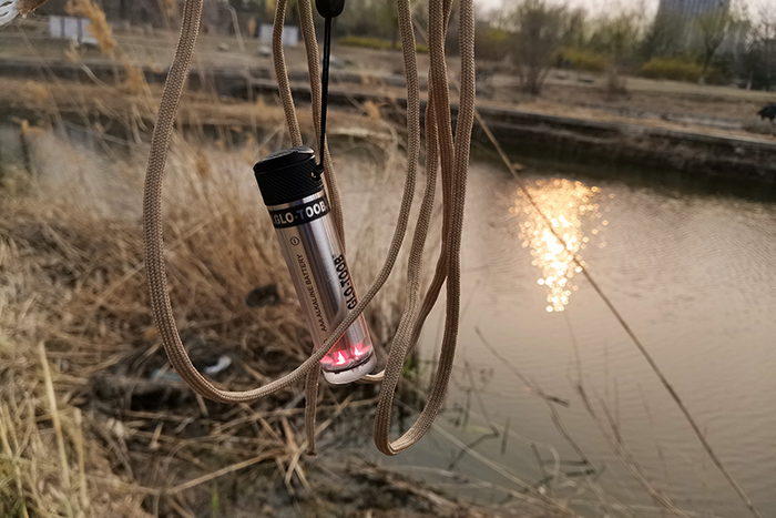 与歌路途其他产品一样,GT-AAA Aurora的防水深度也达到了200米,极端恶劣条件下,也能正常使用。这个深度本人真没有条件做测试,找到一处室外的小湖,配一条3米左右的伞绳做个简单测试。