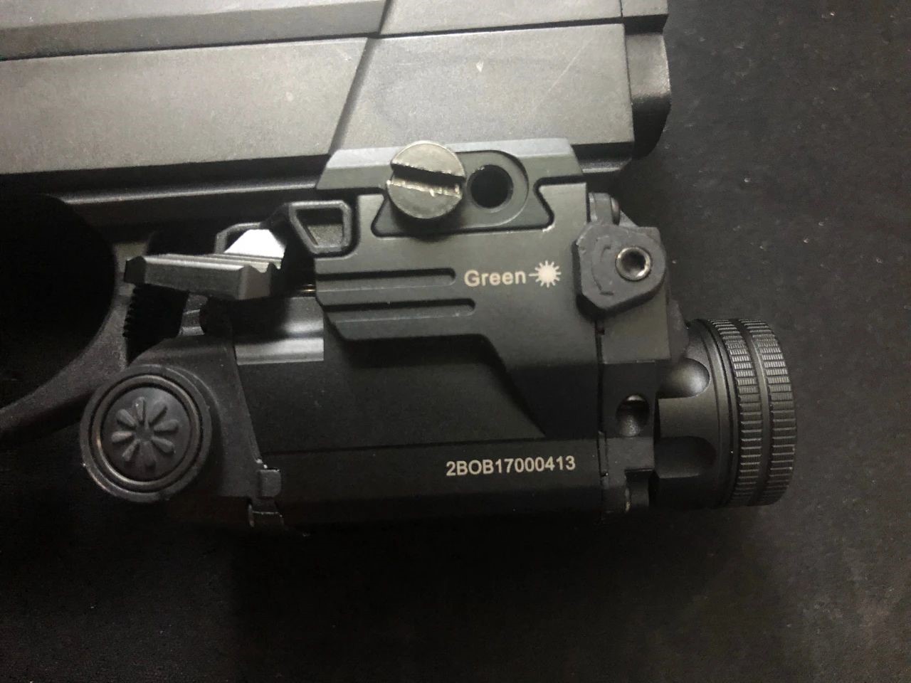 上面那张图是你认为的绿激光,然而WL30却没有绿色激光光柱,为何?嗯,其实也没什么可说的,你在影视剧中看到的和一些拿绿激光做噱头的灯具厂家都忽视了绿激光指示的真正作用,看到目标的绿点即可,哪有刷刷刷几道光柱亮出来找人的,不早就被人发现了么?那只是影视剧中的效果,但是有些不明就里只会模仿山寨的厂家就拿小孩激光玩具来充当实战中的武器指示器,根本没考虑波长。也没有多复杂,改变其频率即可消失光柱。