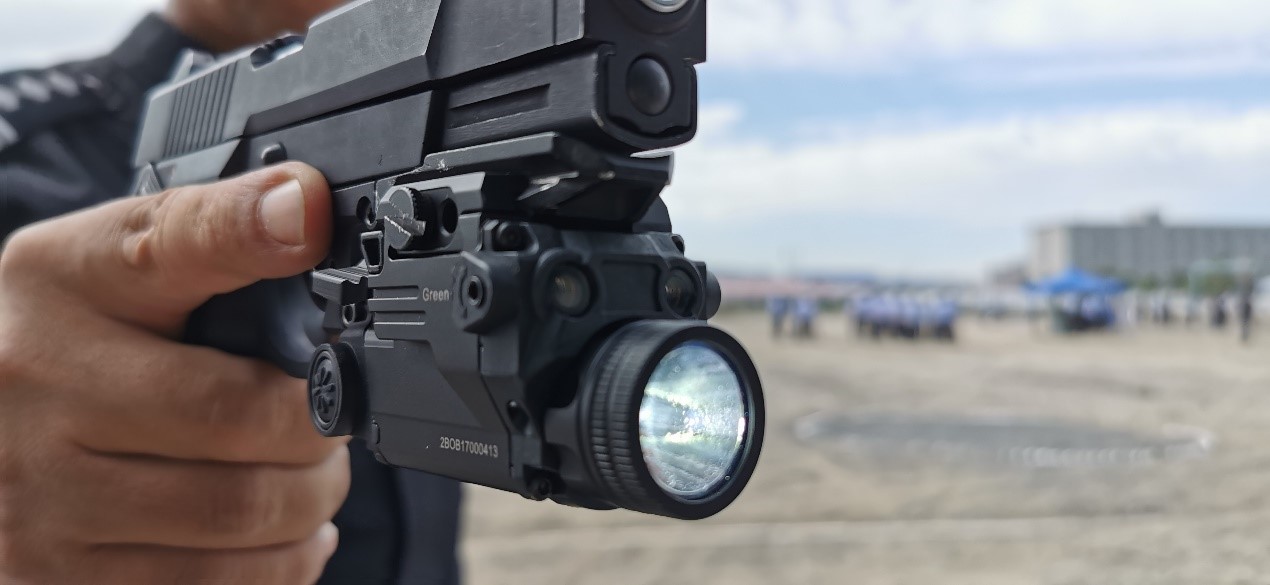 警察使用武器的目的是为了制止违法犯罪,国内目前警用轻武器种类,通常以92式9mm手枪、79式微冲、95步枪、97霰弹系列防暴枪为主,少部分单位还配有格洛克、NP22以及9mm警用冲锋枪等等,手枪里的77式、64式等仍然在一些公安机关作为民警佩戴武器使用。警察依法使用武器的情形有15种,但是警察使用武器的环境和现场却千变万化各有不同——不变的警情,万变的现场。同样一个警情,换成白天与黑夜,处置的时机和临战的状态是完全不一样的。武器与照明的战术搭配早已不是什么新鲜事,国外发展比较成熟,国内目前有许多以白光照明为主的同类产品,价格、质量以及设计水平亦有高低优劣。